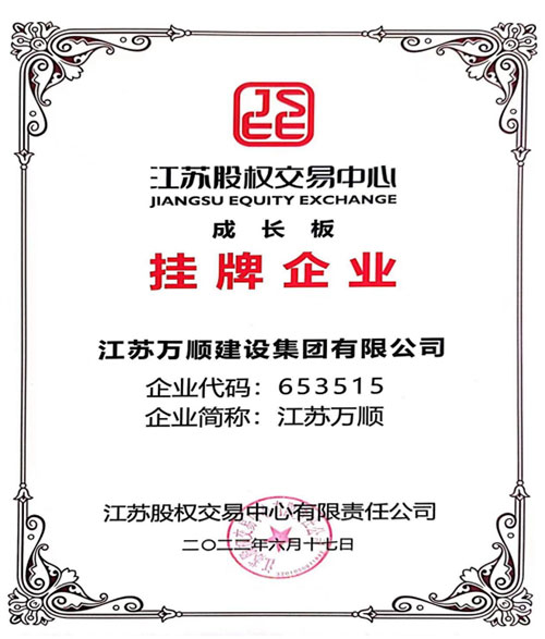 江蘇萬順建設集團于2012年2月經鹽城市阜寧縣工商行政管理局批準設立,目前已形成建筑施工總承包、建材銷售等綜合性、多元化企業,也是一家擁有現代經營管理模式、追求可持續發展的企業。
